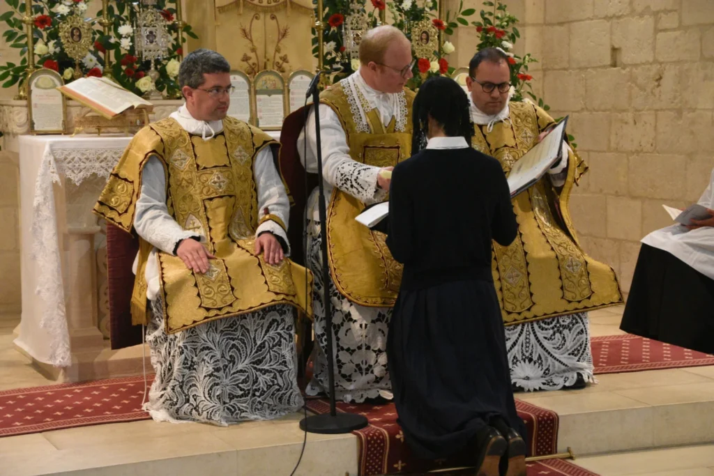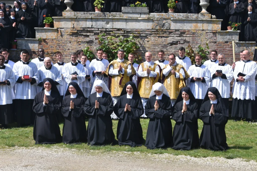 Le dimanche 27 avril, dimanche in albis, l’abbé Gonzague Peignot, Supérieur du District de France de la FSSPX, a présidé la cérémonie de 6 prises d’habit, 8 premières professions et 3 professions perpétuelles pour les Sœurs de la Fraternité Saint Pie X