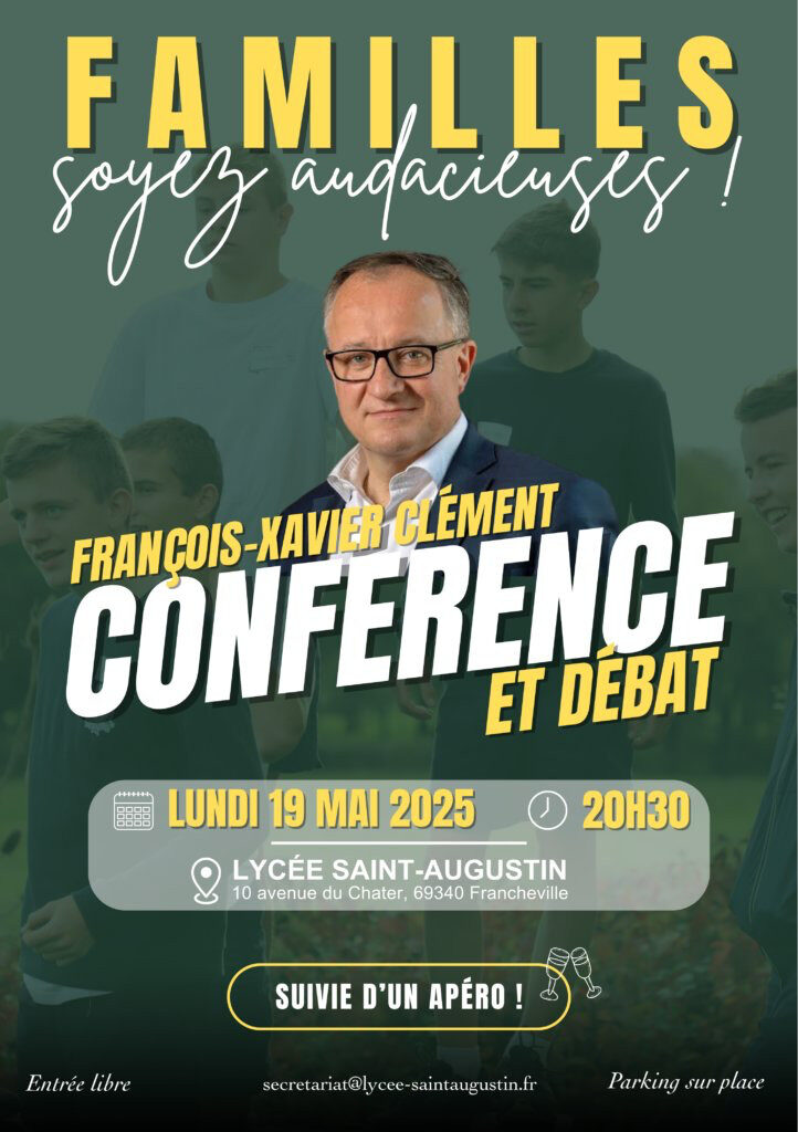 Le lycée vous invite à une conférence de François-Xavier Clément sur le thème « Familles, soyez audacieuses ! » le 19 mai :