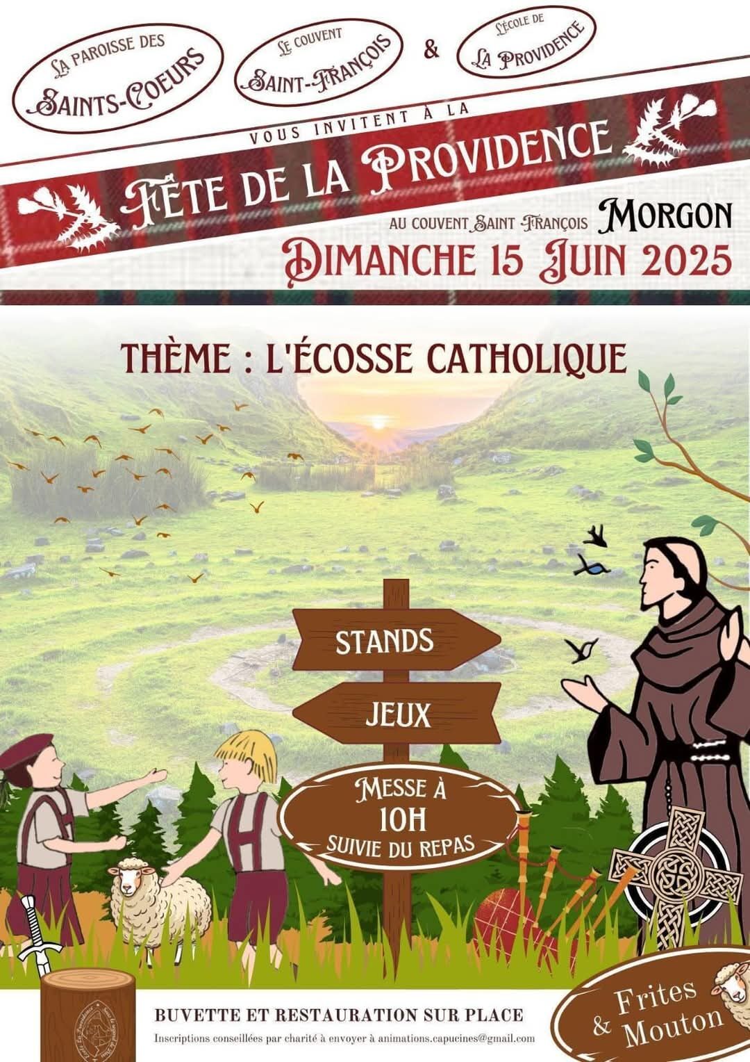 Accueil » Nos archives » Fête de la Providence le 15 juin à Morgon (69) Summorum Pontificum Fête de la Providence le 15 juin à Morgon (69) Le Couvent Saint-François (Capucins de Morgon), l’Ecole de la Providence et la Paroisse des Saints Coeurs de Morgon vous invitent à la fête de la Providence le dimanche 15 juin à l’issue de la messe de 10h00 : Ecole de la Providence (Morgon) Article précédentLe cardinal Sarah envoyé spécial du pape pour le 400e anniversaire des apparitions de sainte Anne Article suivantL'évêque américain qui veut limiter le missel traditionnel dans son diocèse est aussi dans le Desiderio bla-bla-bla 24 mai 2025