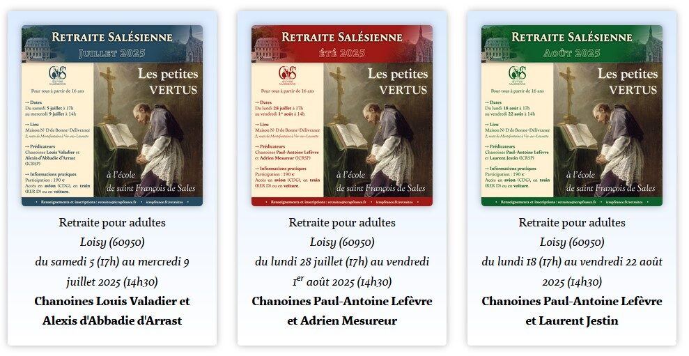 L’Institut du Christ propose de nombreuses retraites spirituelles, dont des retraites salésiennes, dans sa Maison Notre-Dame de Bonne Délivrance (Loisy – 60) :