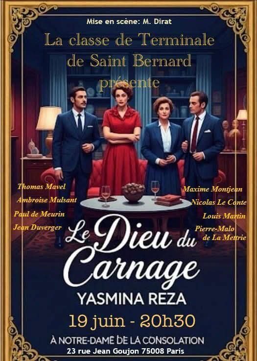 La classe de Terminale de l’Ecole Saint-Bernard (Bailly) invite à sa pièce de théâtre ce jeudi 19 juin à l’église Notre-Dame de la Consolation (Paris VIIIe) :