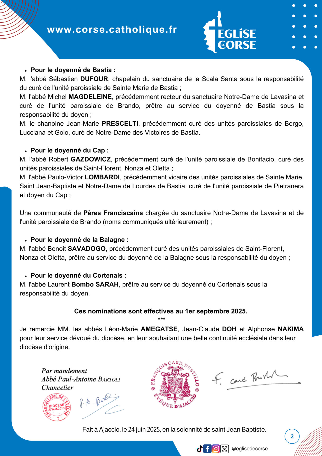 Les nominations diocésaines du diocèse d’Ajaccio sont parues. On y apprend qu’une communauté de Franciscains va se charger du sanctuaire Notre-Dame de Lavasina et de la paroisse de Brando; par ailleurs l’abbé Dufour (FSSP) est éloigné du centre-ville puisqu’il quitte l’église saint-Charles pour être nommé chapelain du sanctuaire de la Scala Sancta, sur les hauteurs de Bastia, à 3 km de l’église saint Charles affectée précédemment à la messe traditionnelle; la chapelle et sa Scala Sancta sont cependant en bon état, après avoir été restaurées pour la dernière fois en 2019. On ne peut pourtant pas dire que le développement modeste de la messe traditionnelle à Bastia enlevait beaucoup de fidèles aux églises du centre-ville…