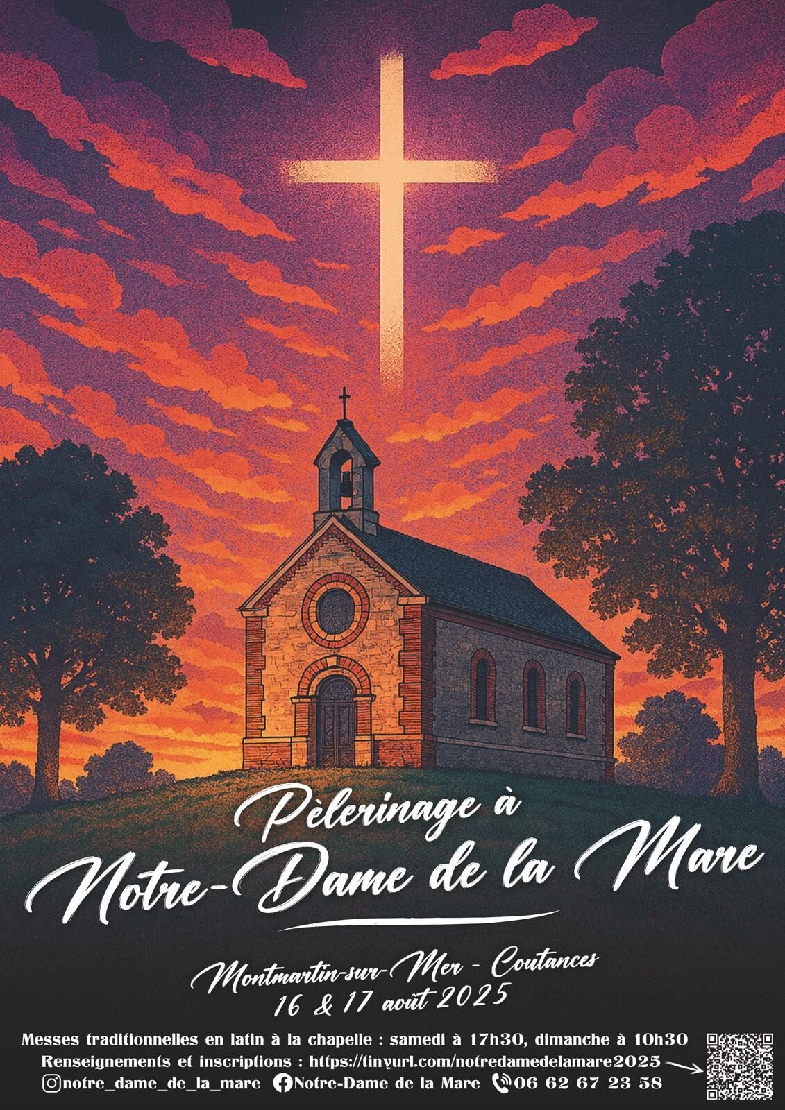 Accueil » Nos archives » Pèlerinage à Notre-Dame de la Mare (Coutances) les 16 et 17 août 2025 Summorum Pontificum Pèlerinage à Notre-Dame de la Mare (Coutances) les 16 et 17 août 2025 Le Pèlerinage à Notre-Dame de la Mare aura lieu les 16 et 17 août en Pays Coutançais. Pèlerinage à Notre-Dame de la Mare (lien d’inscription ou QR code ci-dessus) Article précédentIntronisation du Sacré Cœur dans les familles Article suivantLettre du Saint-Père à l'occasion du 400è anniversaire des apparitions à Sainte-Anne d'Auray 19 juillet 2025