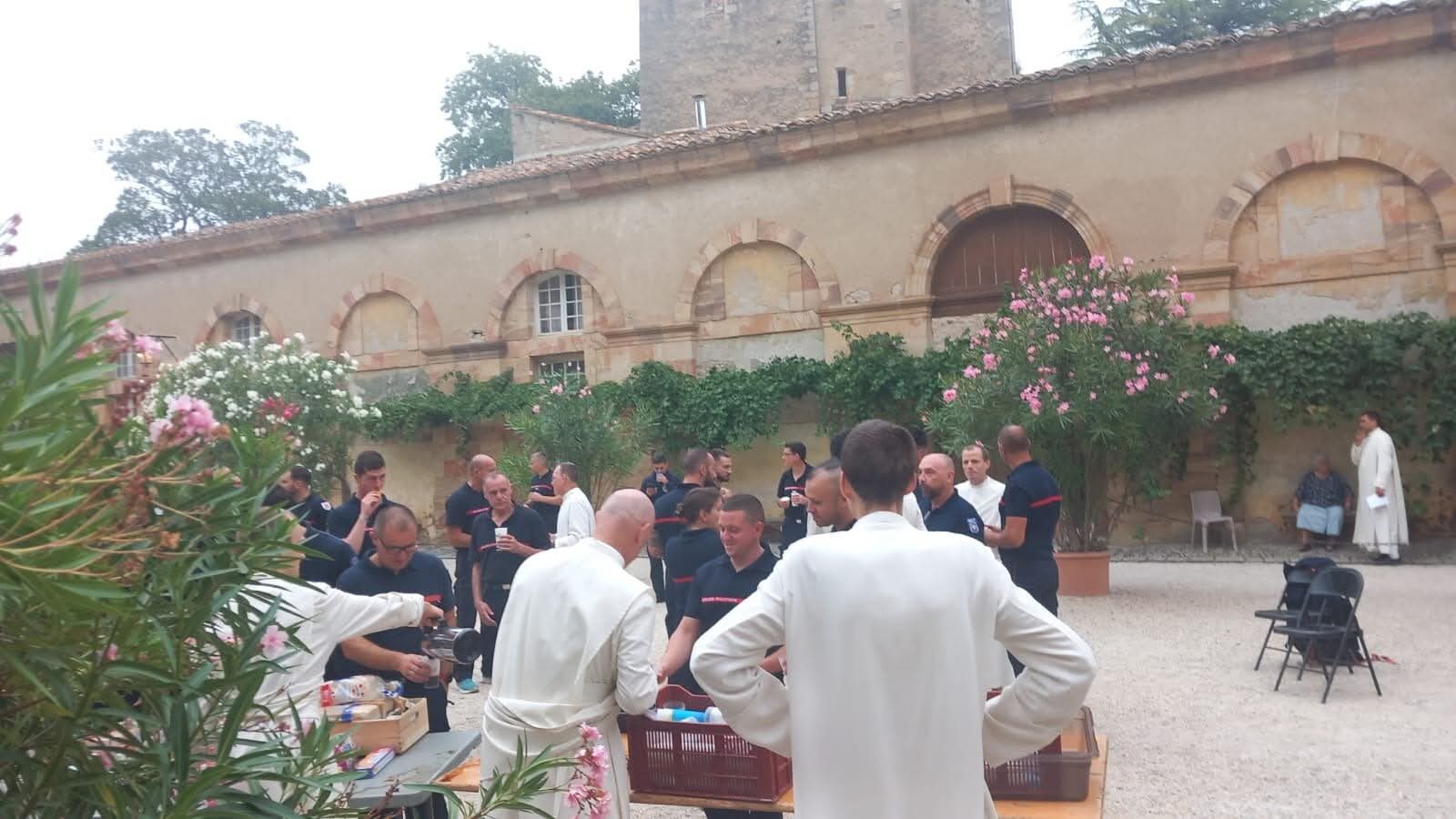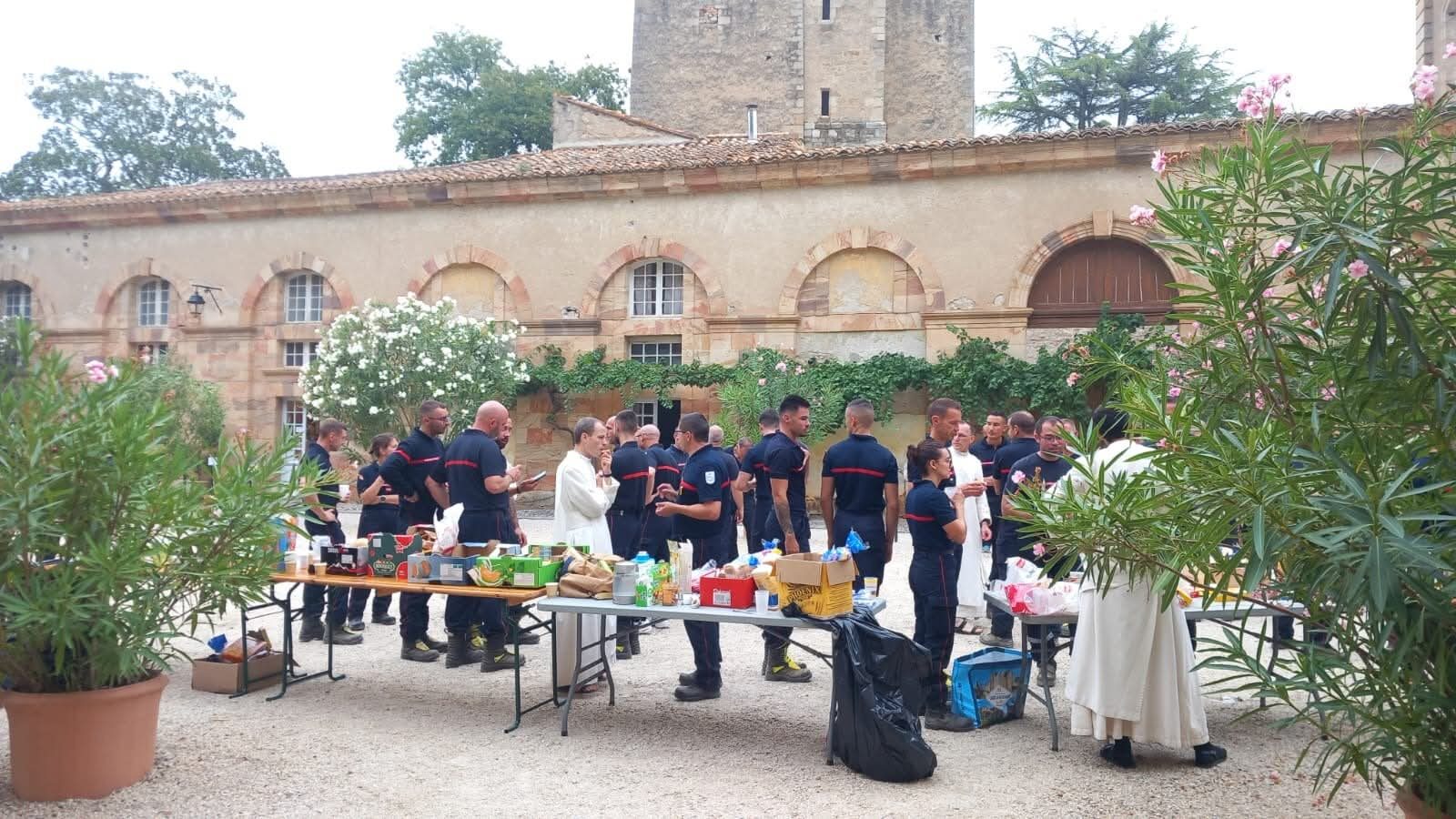 Pendant leur intervention, les pompiers ont pu trouver un peu de réconfort chez les chanoines de Lagrasse : couchages, douches, petit déjeuner pour les soutenir et les remercier.