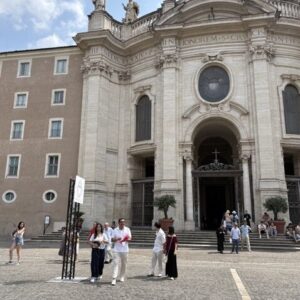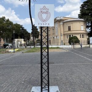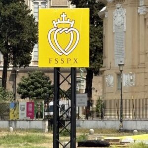 Comme Riposte catholique l’avait indiqué, la Fraternité Ssint-Pie X entame son pèlerinage à Rome dans le cadre de l’année jubilaire. Les sites romains ont été marqués du symbole de la FSSPX, qui représente les cœurs de Jésus et Marie. Le pèlerinage a commencé hier.