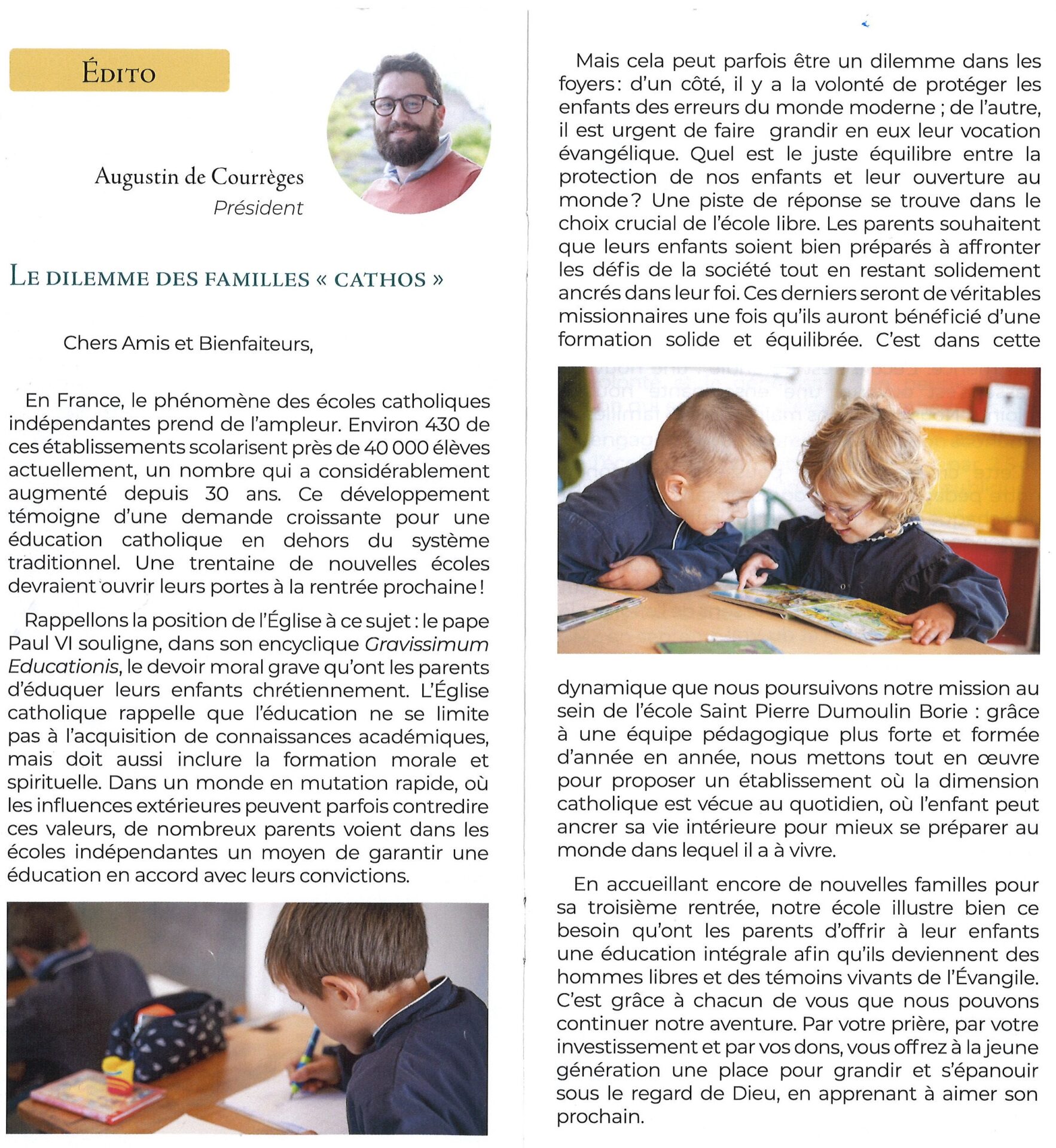 Un lecteur nous invite à connaître cette jeune école primaire, l’Ecole Saint Pierre Dumoulin Borie. Ouverte à Brive par des parents en 2022, elle compte une trentaine d’élève. L’aumônerie est assurée par un prêtre de l’Institut du Christ Roi.