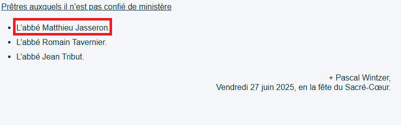 Dans le diocèse de Sens Auxerre, l’ex-père TikTok, Matthieu Jasseron, a-t-il vraiment abandonné le sacerdoce comme il l’a annoncé en octobre dernier ? Celui qui a été ordonné contre l’avis du séminaire d’Orléans affirme partout qu’il n’est plus prêtre, cependant selon nos informations il n’a pas écrit au Pape pour être relevé de ses devoirs sacerdotaux, et sa présence dans les nominations de juin dernier du diocèse, parmi les prêtres auxquels il n’est pas confié de ministère confirme, en creux, qu’il est toujours prêtre.