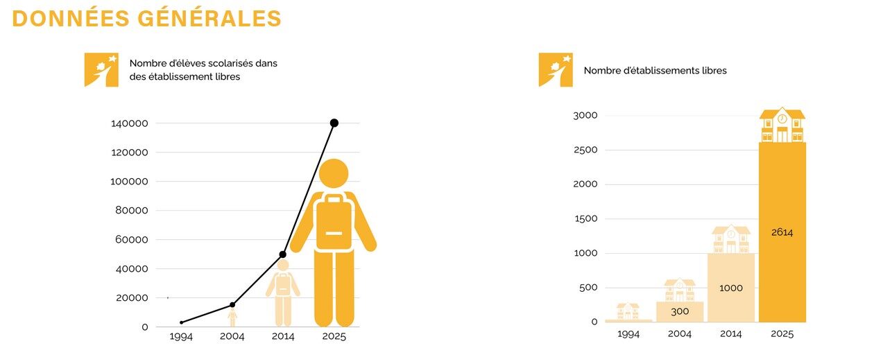- 2 614 écoles recensées en 2025, contre quelques dizaines il y a 30 ans.