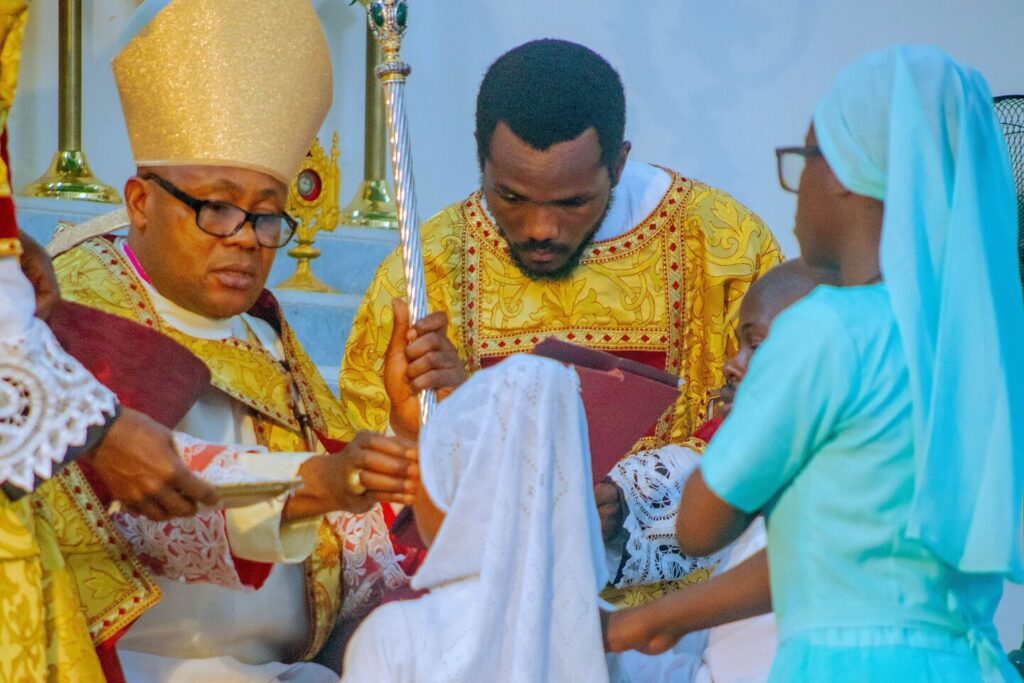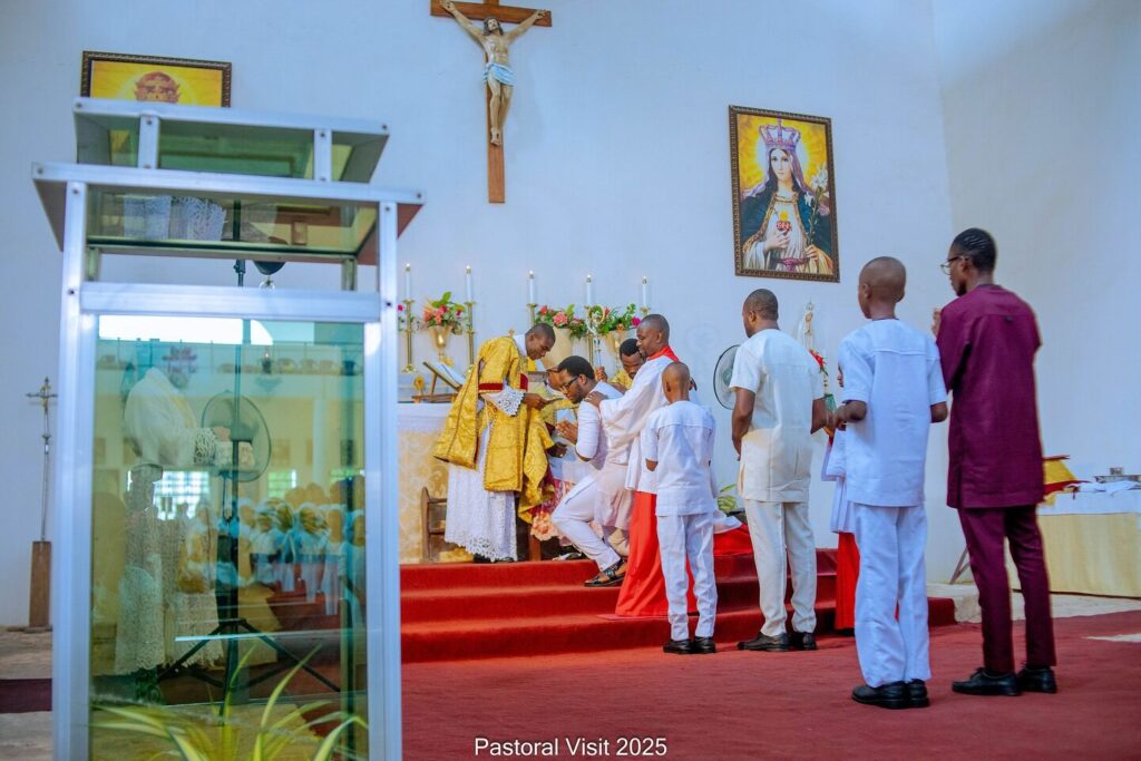 Le 24 août dernier, Mgr Thomas Obiatuegwu, évêque auxiliaire d’Orlu (Nigéria), est venu conféré le sacrement de confirmation aux jeunes de la Paroisse Nne Enyemaka (Sanctuaire Notre-Dame du Perpétuel Secours) à Amurie, paroisse personnelle de la Fraternité Saint-Pierre au Nigéria :