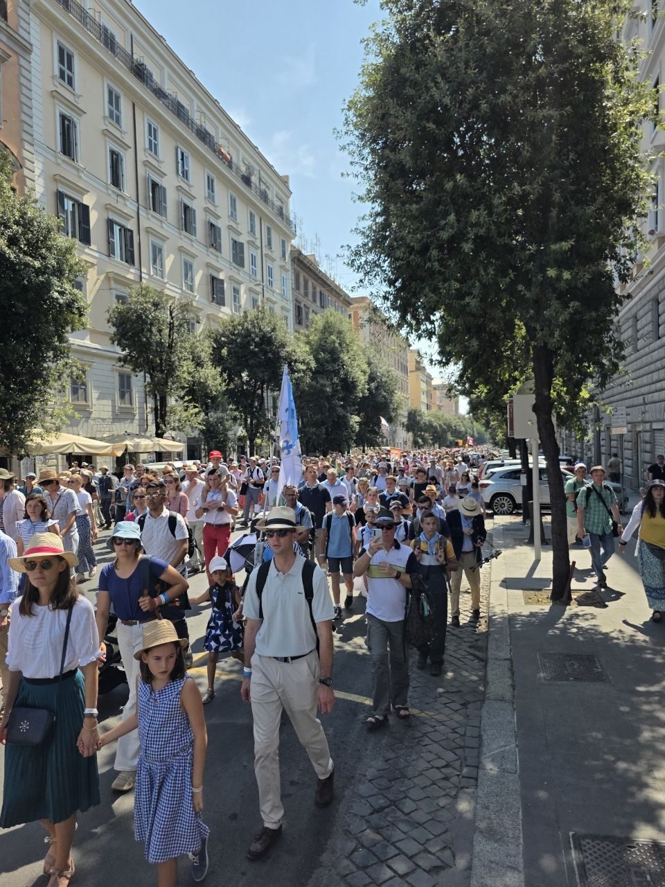 « Nous avons eu un excellent accueil aussi bien dans les basiliques (les trois dépendent directement du Vatican) où les services d’ordre ont été mis à notre service pour faire entre nos pèlerins en corps constitué sans les tracasseries imposées aux touristes (portiques de détection seulement à Saint Pierre et encore, les nôtres étaient privatisés).