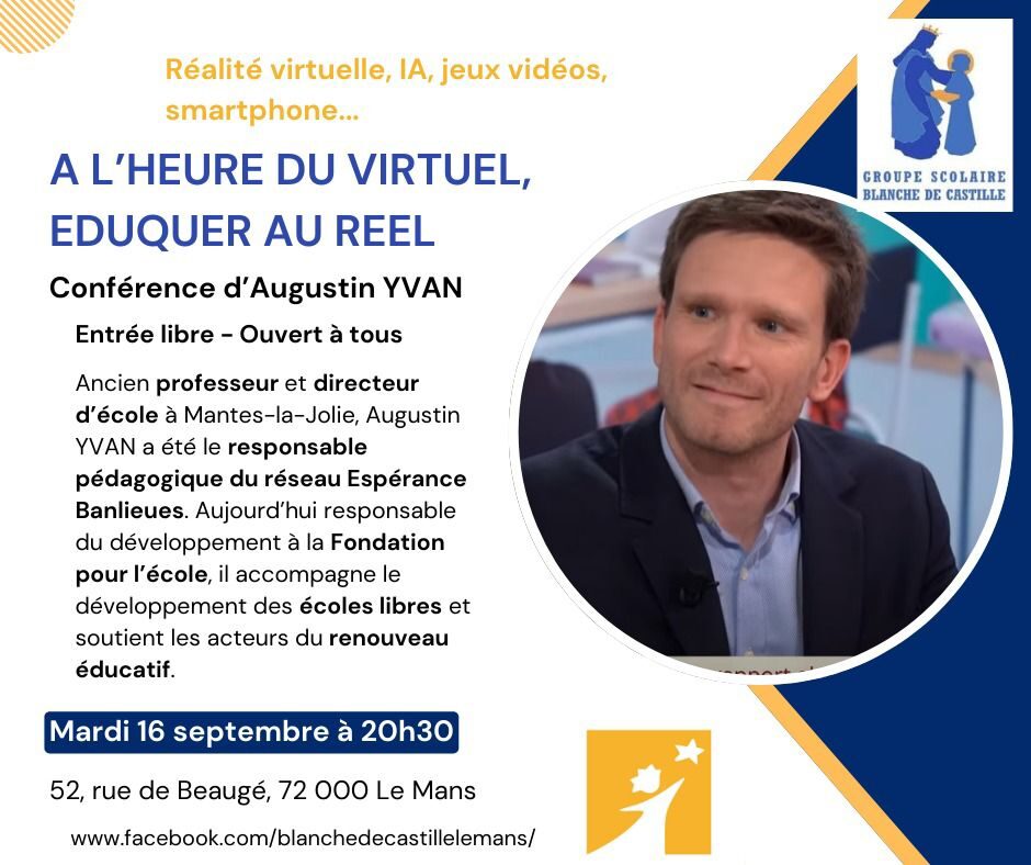 L’établissement propose une conférence « A l’heure du virtuel, éduquer au réel » le mardi 16 septembre :