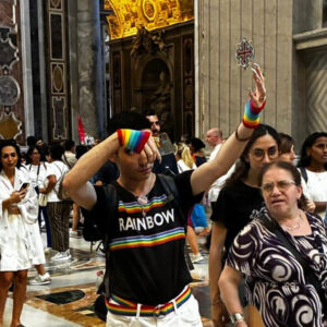 Le pèlerinage LGBT se tenait à Rome ce samedi dernier. Le groupe La Tenda di Gionata avait fait son entrée dans la basilique Saint-Pierre avec d’autres groupes de pèlerins. On notera quelques revendications et expressions suggestives dans des lieux comme la basilique Saint-Pierre de Rome qui ne sauraient être appropriés à ce genre de message.