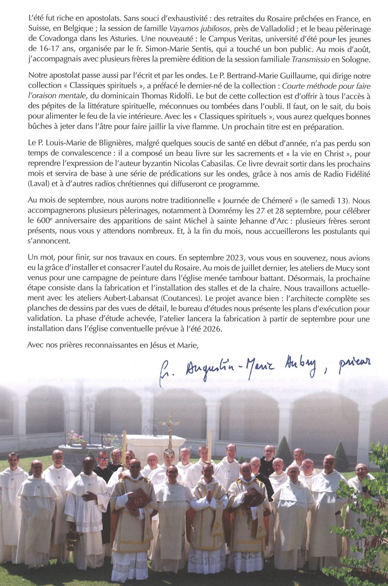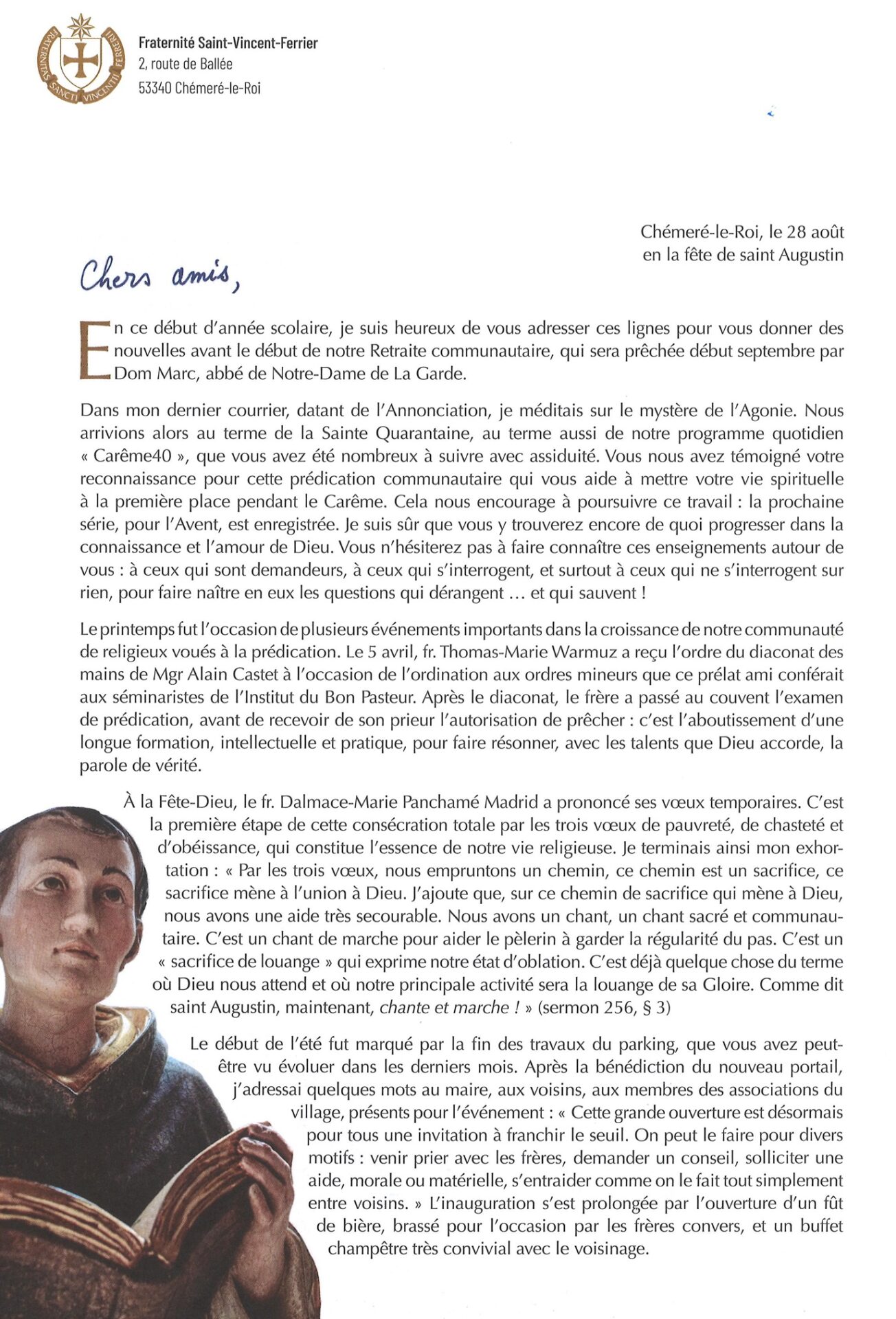 Le RP Augustin-Marie, Prieur de la Fraternité Saint Vincent Ferrier, donne les dernières nouvelles du couvent Saint Thomas d’Aquin et de ses activités apostoliques. Le couvent travaille également sur la réalisation des stables de son église conventuelle.