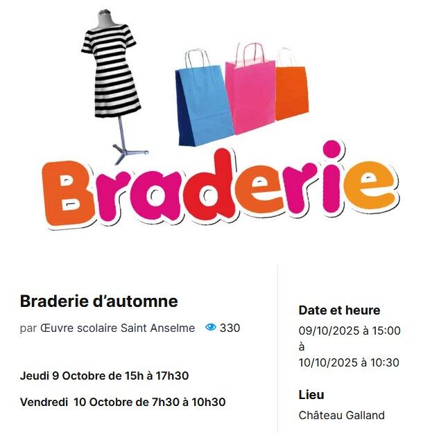une braderie les 9 et 10 octobre (dans les locaux de l’école – 6 Chemin de la Chaille – 25000 Besançon)