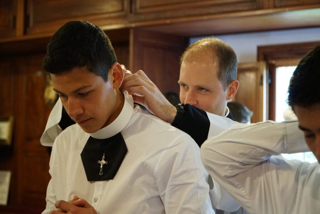 Le 15 septembre, l’abbé Jean de Lassus, recteur du Séminaire Nuestra Senora Corredentora (La Reja), a remis la soutane à 12 séminaristes de l’année de spiritualité. Les séminaristes sont originaires d’Argentine, du Brésil, de Colombie, du Mexique, d’Australie, du Gabon et du Nigéria.