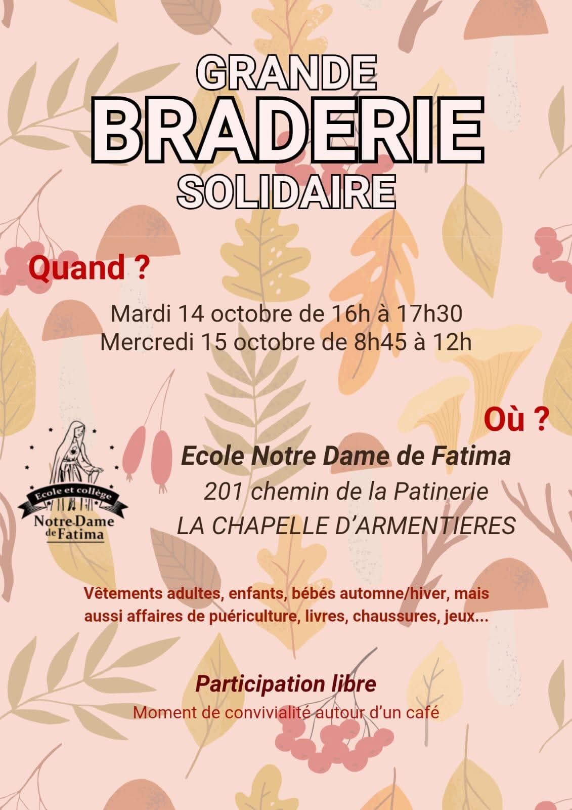 Sa Grande Braderie solidaire aura lieu les 14 et 15 octobre à l’école :