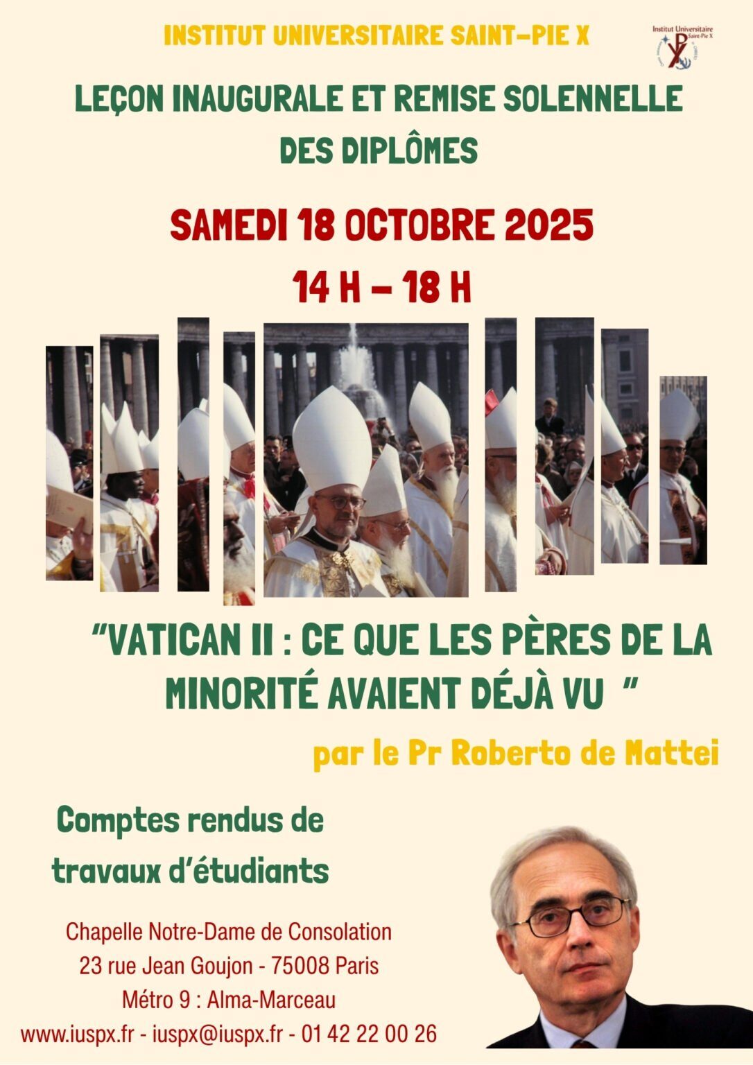 L’Institut Universitaire Saint Pie X invite à sa leçon inaugurale le samedi 18 octobre à Paris: