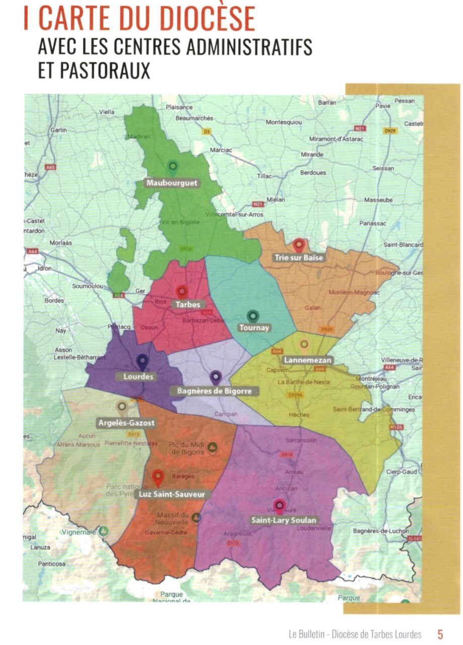 Le diocèse de Tarbes Lourdes se réorganise autour de dix grandes paroisses, après plusieurs années de difficultés pour tenir à bouts de bras la géographie ecclésiastique et le départ de plusieurs communautés religieuses (Prémontrés, Franciscains Conventuels) et de prêtres (l’abbé Hillary renvoyé avec difficulté à Nevers – qualis artifex…, l’abbé Chevallier..). Mgr Micas avait même inventé les nominations à trous… à remplir lorsque le clergé nécessaire serait trouvé ou qu’il pourra au moins être nommé. Un pèlerinage diocésain à Lourdes du 16 au 21 octobre doit servir de cadre où Mgr Micas annoncera les nouvelles orientations et la nouvelle géographie, même si ladite manifestation – avec une journée permettant à tous les élèves de l’enseignement catholique d’y participer – va certainement faire venir bien plus que les pratiquants réguliers des samedis et dimanches en paroisses, les premiers touchés par la réorganisation…