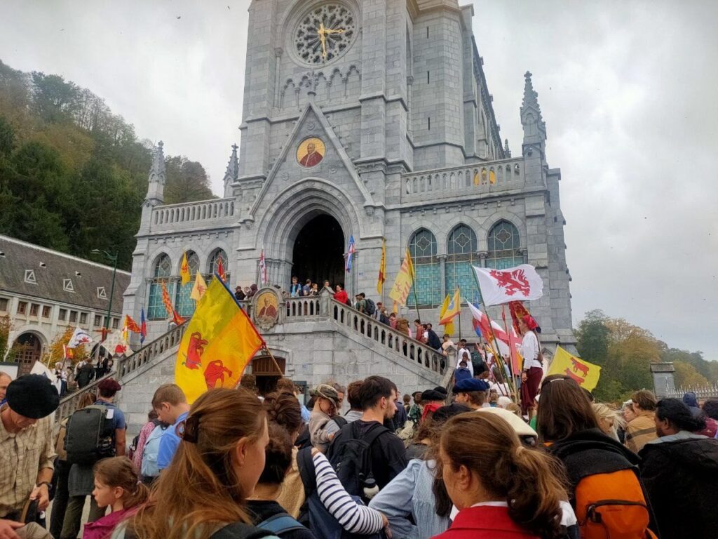 Près de 500 pèlerins se sont retrouvés samedi à Montaut (64) pour un bivouac familial avec une veillée Gascogne suivi par une adoration nocturne du Saint-Sacrement. Dimanche, le colonne s’est élancée vers Lourdes pour 17 km de marche. Le Pèlerinage a été accompagné par des prêtres communautés ex Ecclesia Dei et des prêtres diocésains. A l’arrivée au Sanctuaire de Lourdes, une messe solennelle a été célébrée à la Basilique de l’Immaculée-Conception de Lourdes par l’abbé Augustin Cayla, FSSP assisté de l’abbé Maxime Quinquis, IBP comme diacre et le Chanoine Cyprien Parant, comme sous-diacre.
