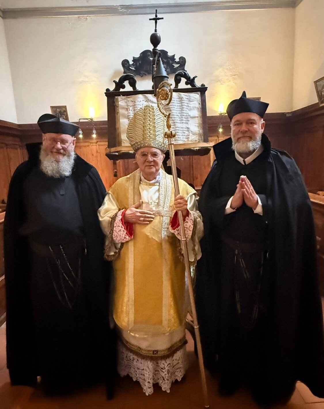 Alors que les Fils du Très Saint Rédempteur, appelés aussi Rédemptoristes transalpins, ont annoncé dans une lettre ouverte leur rupture avec l’Église « synodale » en invoquant plusieurs textes et actes du pape François, la question est de savoir où ils iront. Mais la réponse semble donnée par cette photo: avec Mgr Carlo Maria Viganò, qui non seulement a été réordonné par Mgr Williamson, mais qui a été déclaré par Rome comme étant excommunié latae sententiae.