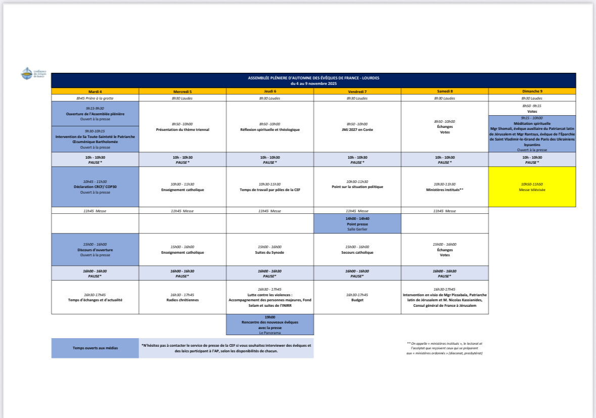 Du mardi 4 au dimanche 9 novembre 2025, les évêques de France seront réunis en assemblée plénière à Lourdes. Ils traiteront notamment de l’enseignement catholique, des radios chrétiennes ou des suites qui seront données au dernier synode romain.