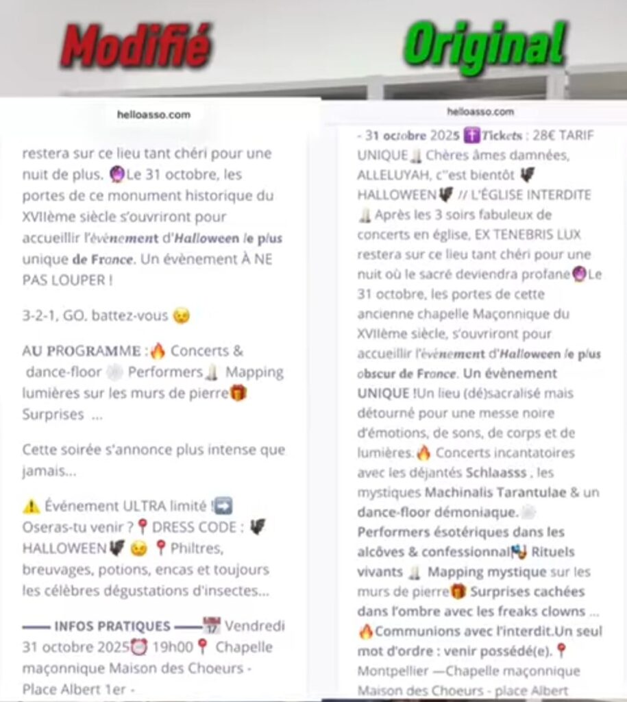 D’après une vidéo réalisée par de jeunes montpelliérains qui s’indignent de cet événement – ce qui relève de la liberté d’expression – cette présentation officielle aurait depuis été modifiée et édulcorée pour effacer les aspects les plus anti-chrétiens.