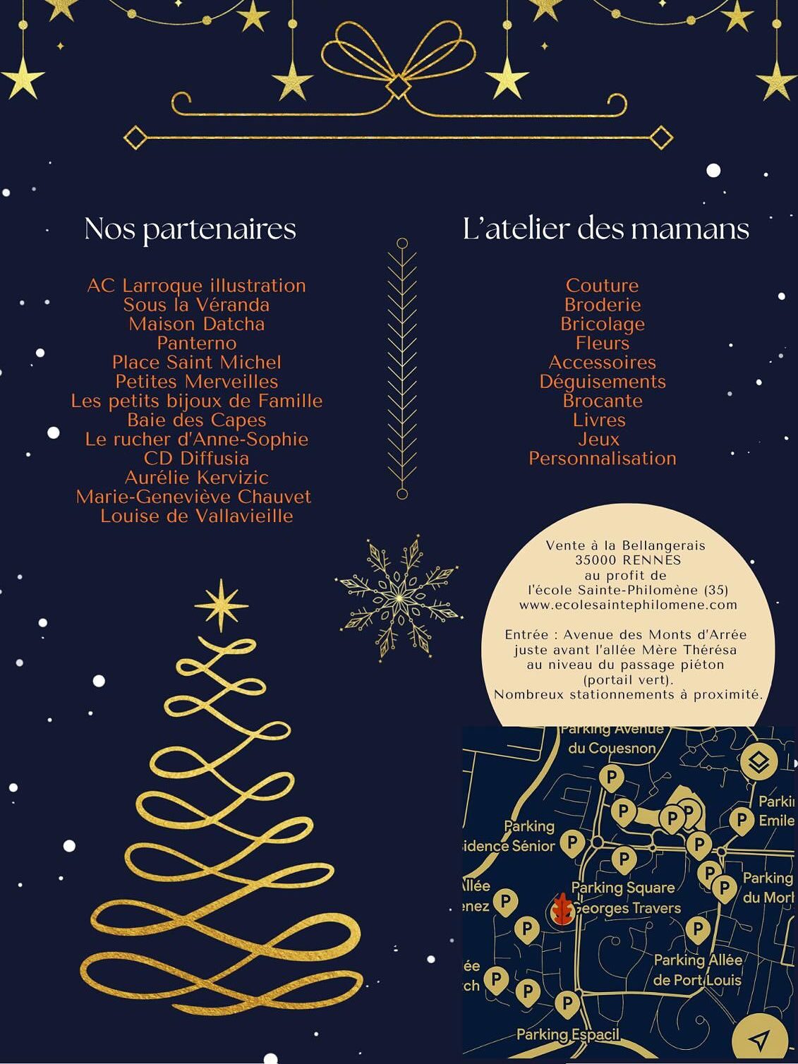 Son marché de Noël aura lieu le jeudi 20 (10h00 – 19h45) et vendredi 21 (9h30 – 14h00) novembre ) Bellangerais à Rennes.
