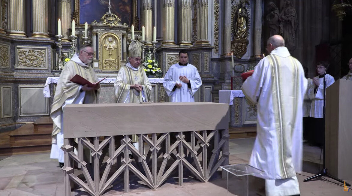 Samedi 25 octobre, un nouvel autel en grès des Vosges a été consacré dans la chapelle Saint-Laurent de la Cathédrale de Strasbourg.