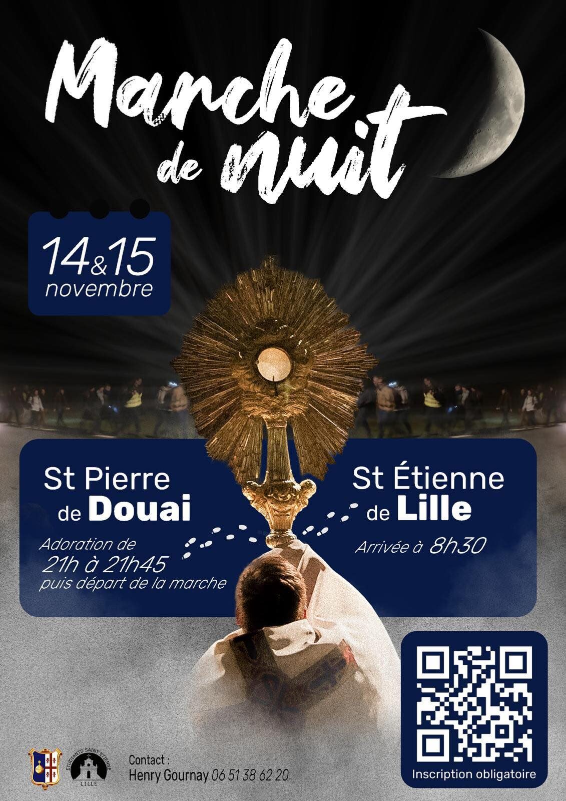 Le 2è édition de la Marche de Nuit de Douai à Lille aura lieu dans la nuit du 14 au 15 novembre (environ 40 km de marche). L’aumônerie est assurée par l’Institut du Christ Roi.