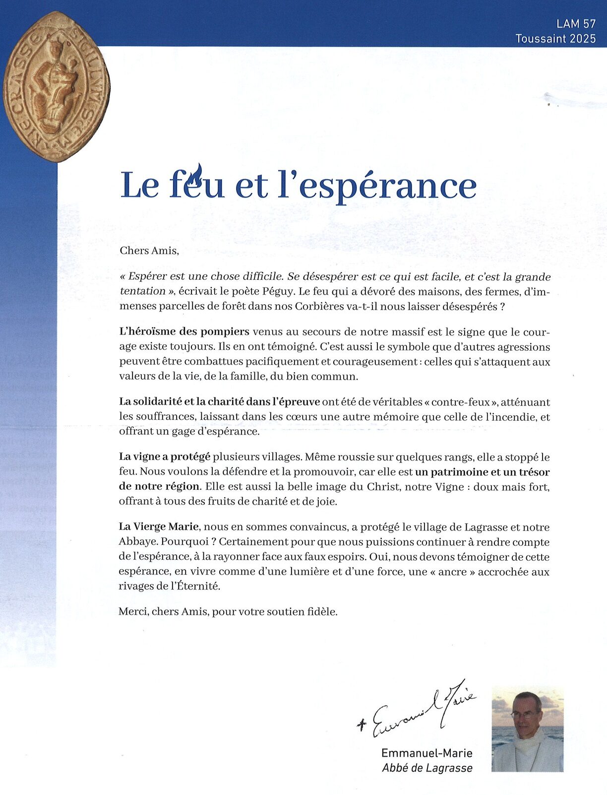 Dernière lettre aux Amis de l’abbaye de Lagrasse (n°57)