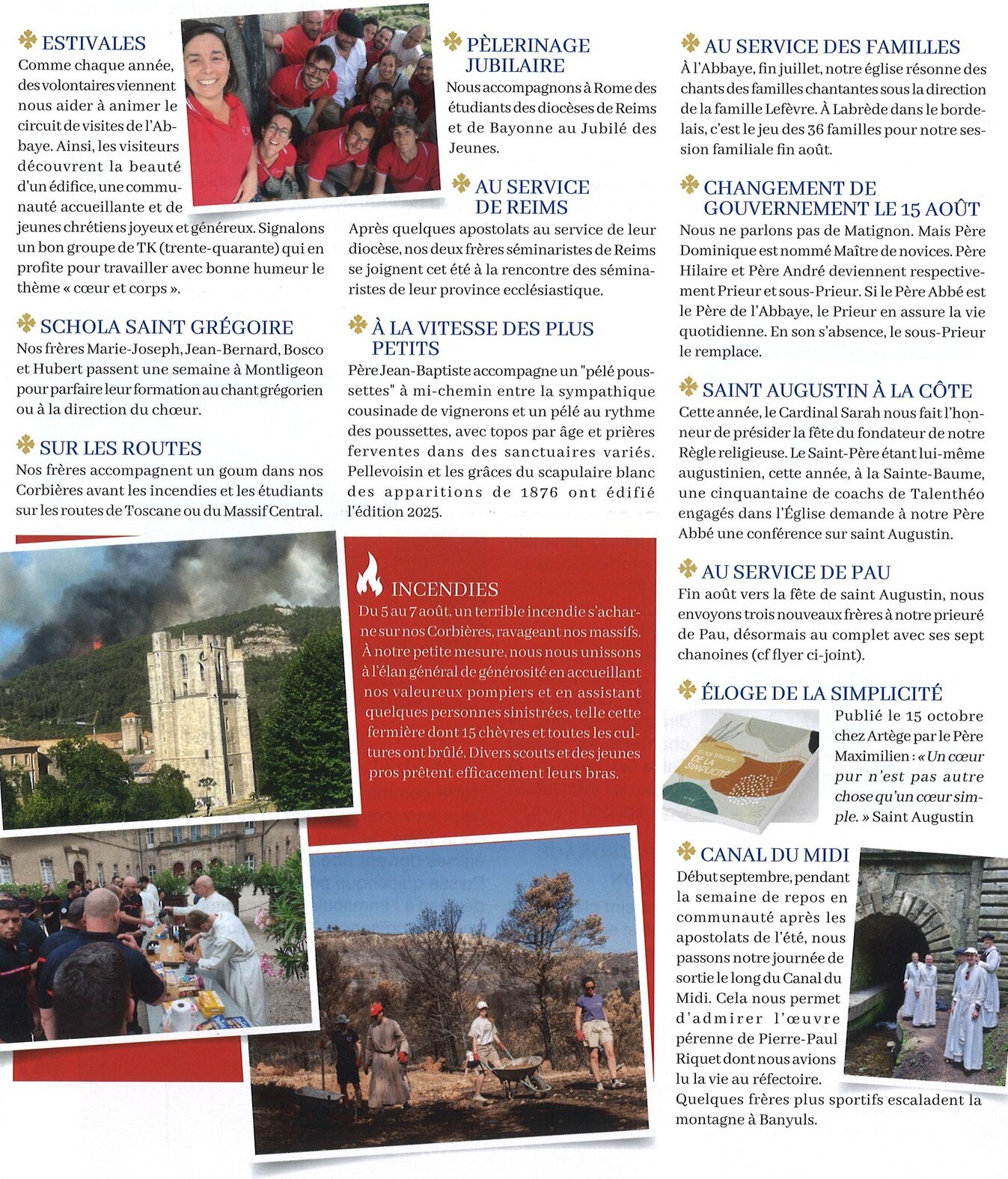 La dernière lettre aux Amis de l’abbaye Sainte-Marie de Lagrasse (n°57, Toussaint) revient sur les derniers évènements de la vie de la communauté parmi lesquels l’incendie gigantesque qui a touché en août dernier le massif des Corbières :