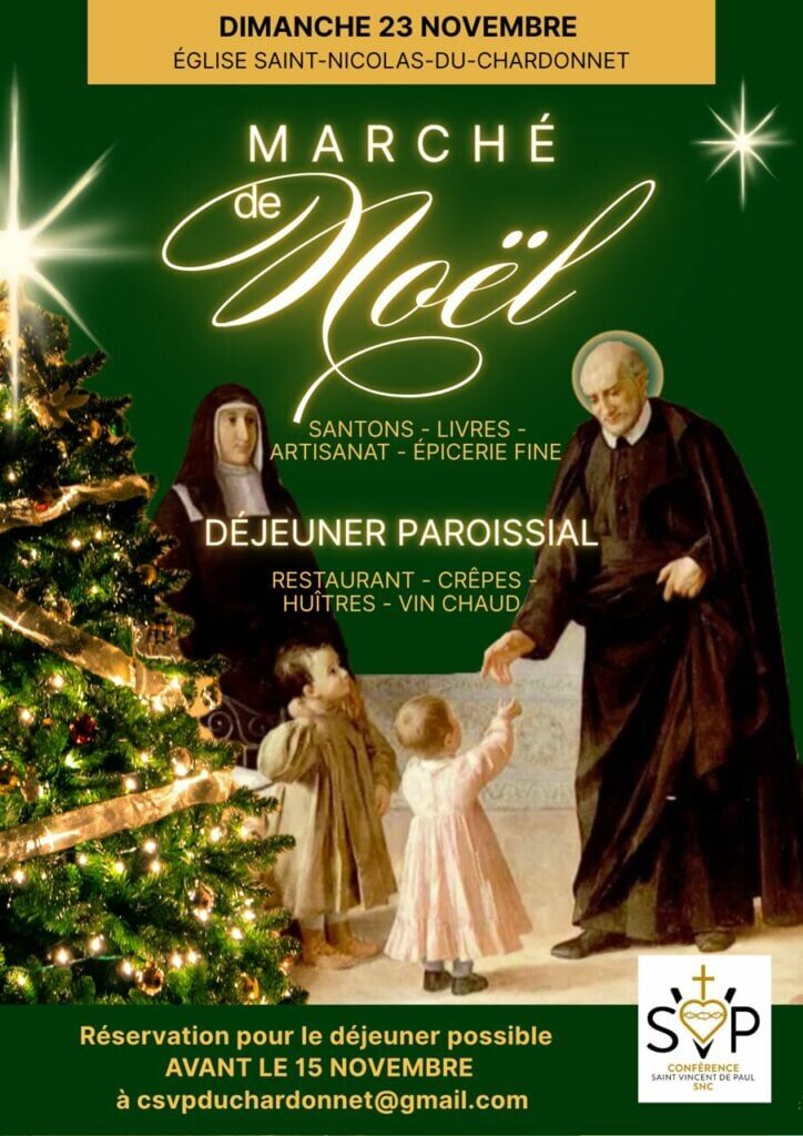La Conférence Saint Vincent de Paul de Saint-Nicolas du Chardonnet à Paris (FSSPX) vous invitent à son Marché de Noël les 23 novembre pour financer ses oeuvres de charité :