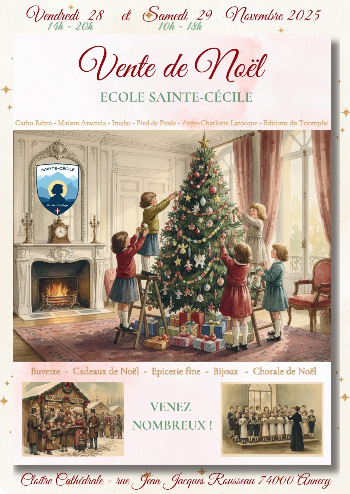 L’école et le collège Sainte-Cécile (Annecy) vous convient à leur Marché de Noël les 29 et 30 novembre dans le centre d’Annecy :