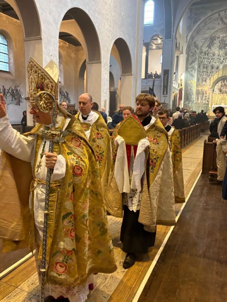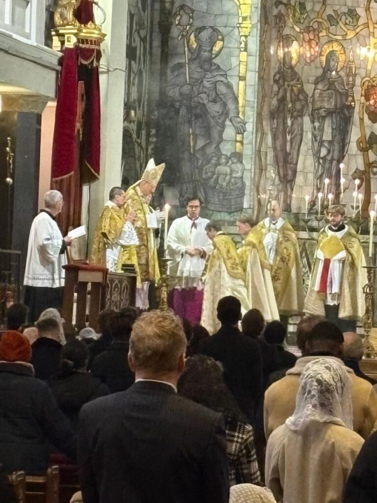 A l’issue de l’administration du sacrement, une messe solennelle a été célébrée par l’abbé Andrzej Komorowski FSSP, ancien vicaire de la paroisse personnel, ancien supérieur général de la Fraternité Saint-Pierre, avec l’assistance de l’évêque.