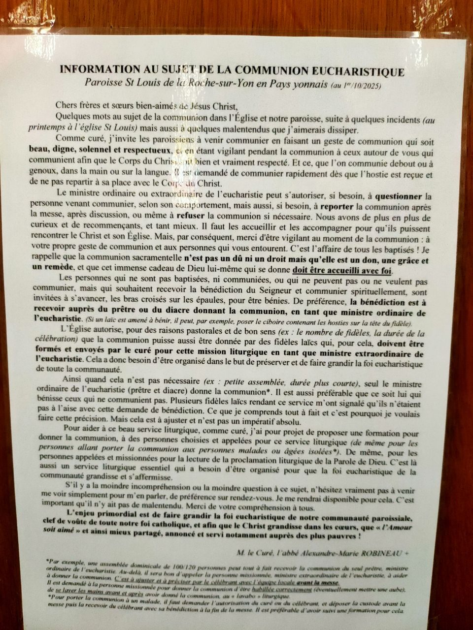 Il n’y a pas que le diocèse madrilène d’Alcala de Henares qui s’alarme des péchés contre l’eucharistie. Dans toutes les églises de la Roche sur Yon en Vendée, sur les portes ou près de l’autel, est affiché un rappel des règles en matière de communion eucharistique :