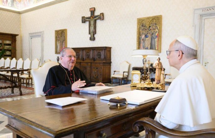 Le 15 novembre 2025, j’ai été reçu en audience privée par le pape Léon XIV à la bibliothèque du Palais apostolique. L’audience a duré 30 minutes. Après m’être présenté comme évêque de l’Administration apostolique personnelle de saint Jean-Marie Vianney, titre qu’il ne connaissait certainement que de nom, je lui ai expliqué son origine et les raisons de sa création par le pape saint Jean-Paul II en 2002. Je lui ai relaté notre histoire et lui ai remis nos documents ainsi que ceux du Saint-Siège s’y rapportant. Je lui ai également offert certains de mes livres, articles et éclaircissements. J’ai évoqué notre cheminement théologique et spirituel, notre sortie de la séparation d’avec l’Église et notre prise de conscience de la nécessité de la communion, communion dans laquelle, grâce à Dieu et à l’Église, nous nous trouvons aujourd’hui.