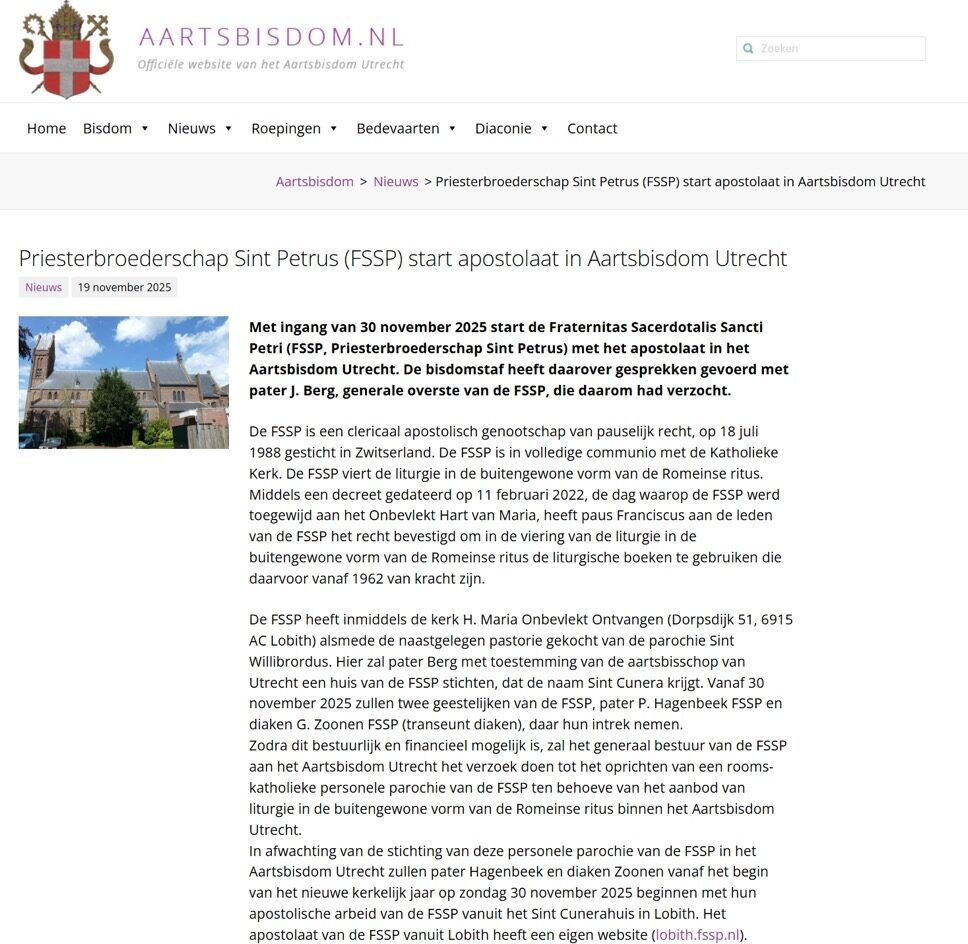 Dans un récent communiqué, l’archidiocèse d’Utrecht laisse entrevoir la mise en place d’une paroisse personnelle pour la Fraternité sacerdotale Saint-Pierre.