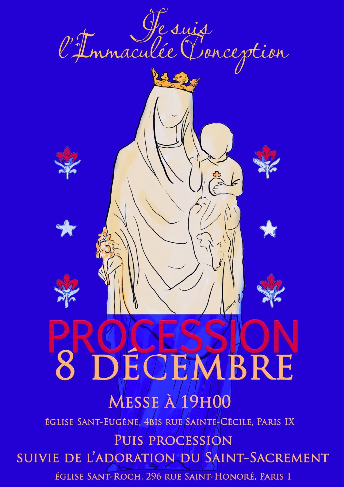 Les Paroisses Saint-Eugène-Sainte-Cécile et Saint-Roch (Paris) proposent une procession à l’occasion de la fête de l’Immaculée Conception le lundi 8 décembre :