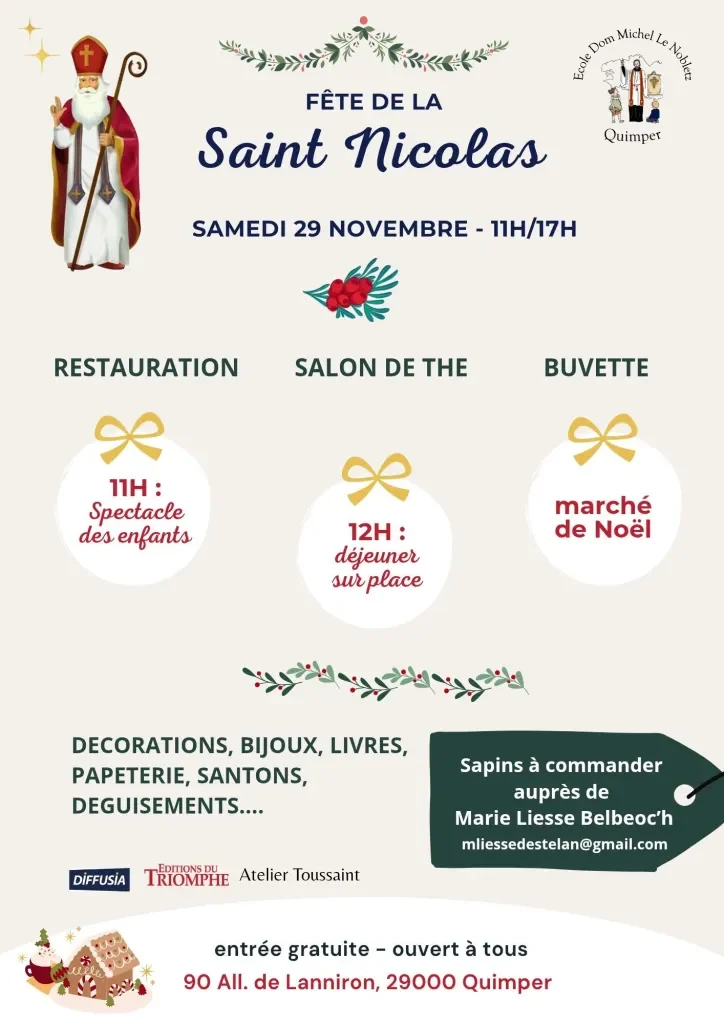 Marché de Noël 2025 : Ecole Dom Michel Le Nobletz (Quimper) le 29 novembre
