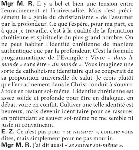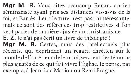 Le magazine Causeur a organisé un débat entre Mgr Matthieu Rougé, évêque de Nanterre, et Eric Zemmour, suite au dernier livre de ce dernier, La Messe n’est pas dite. Soulignons le courage de l’évêque de Nanterre, qui accepte de débattre avec un homme politique, classé très à droite de l’échiquier politique.