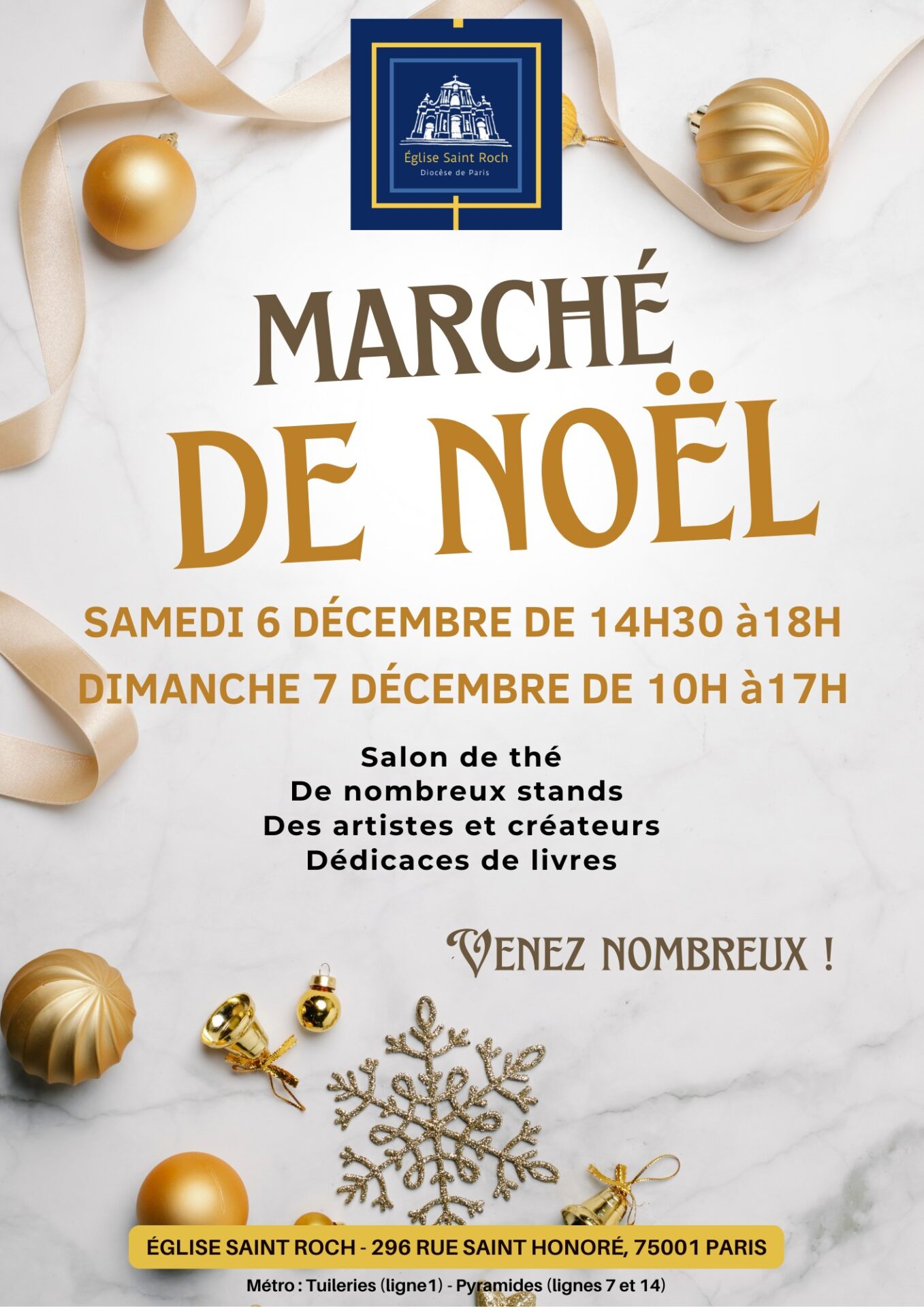 Accueil » Nos archives » Marché de Noël 2025 : Paroisse Saint-Roch (Paris) les 6 et 7 décembre Summorum Pontificum Marché de Noël 2025 : Paroisse Saint-Roch (Paris) les 6 et 7 décembre La Paroisse Saint-Roch (Paris) nous invite à son Marché de Noël le samedi 6 et dimanche 7 décembre : Paroisse Saint-Roch (Paris) Article précédent2è dimanche de l'Avent Article suivantTournai (Belgique) : un diacre en vue du sacerdoce 7 décembre 2025