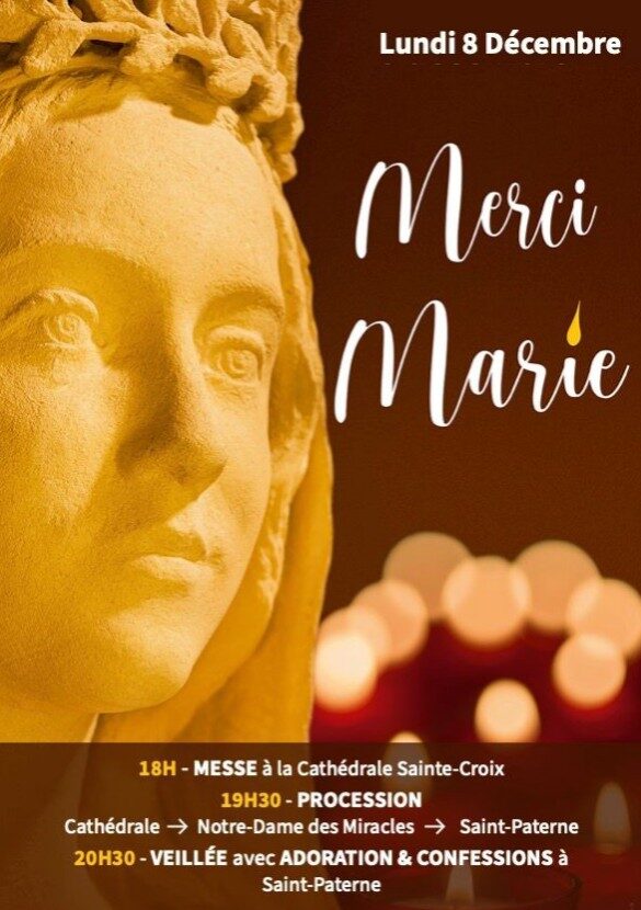 Comme l’an passé, une procession commune aux paroisses d’Orléans (et Notre-Dame de Recouvrance où est célébrée par la messe traditionnelle) a lieu ce lundi 8 décembre (Messe traditionnelle à Notre-Dame de Recouvrance à 17h00)