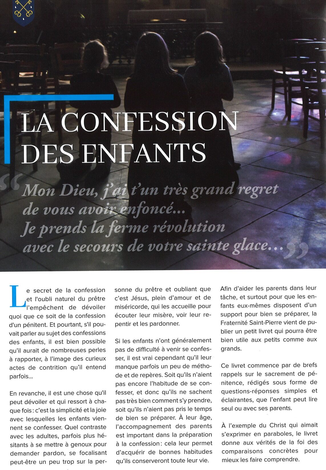 Un autre article revient sur la confession des enfants (cf ci-dessous). (Commander le livret La confession des enfants publié par lac FSSP – gratuit uniquement les frais de port).