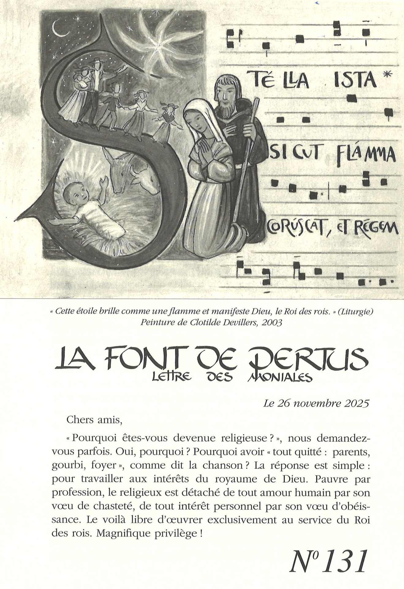 Dans la dernière lettre des Moniales du Barroux, La Font de Pertus (n°131, 26 novembre 2025), Mère Placide, abbesse, évoque le Christ Roi :