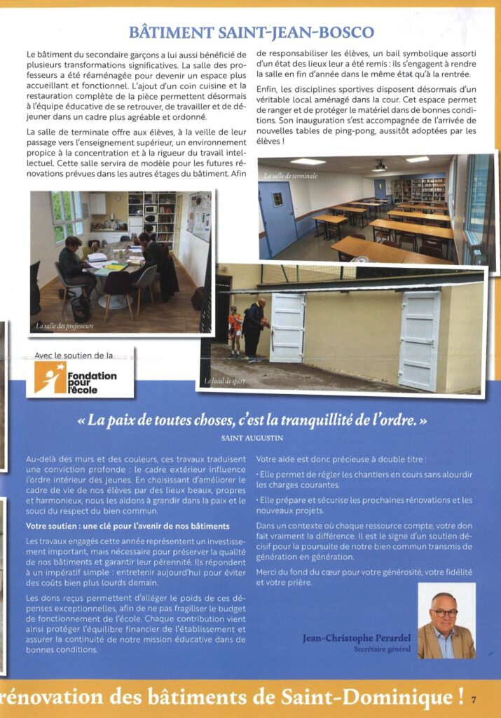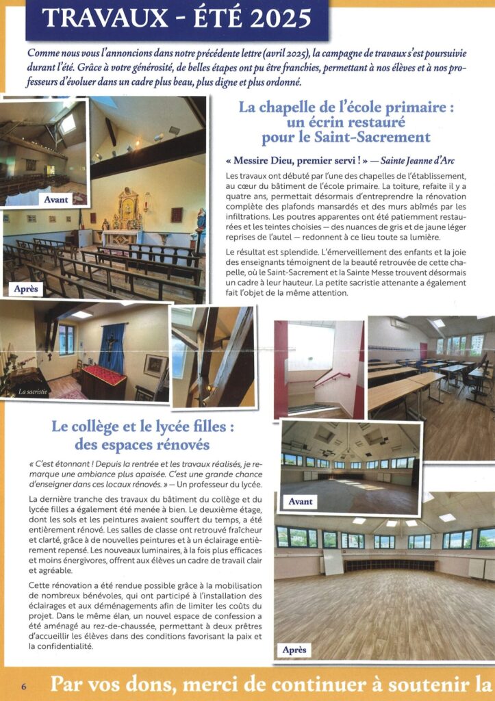 Dans sa dernière lettre aux Amis, l’école évoque les travaux effectués ces derniers mois pour accueillir au mieux les élèves et les professeurs.