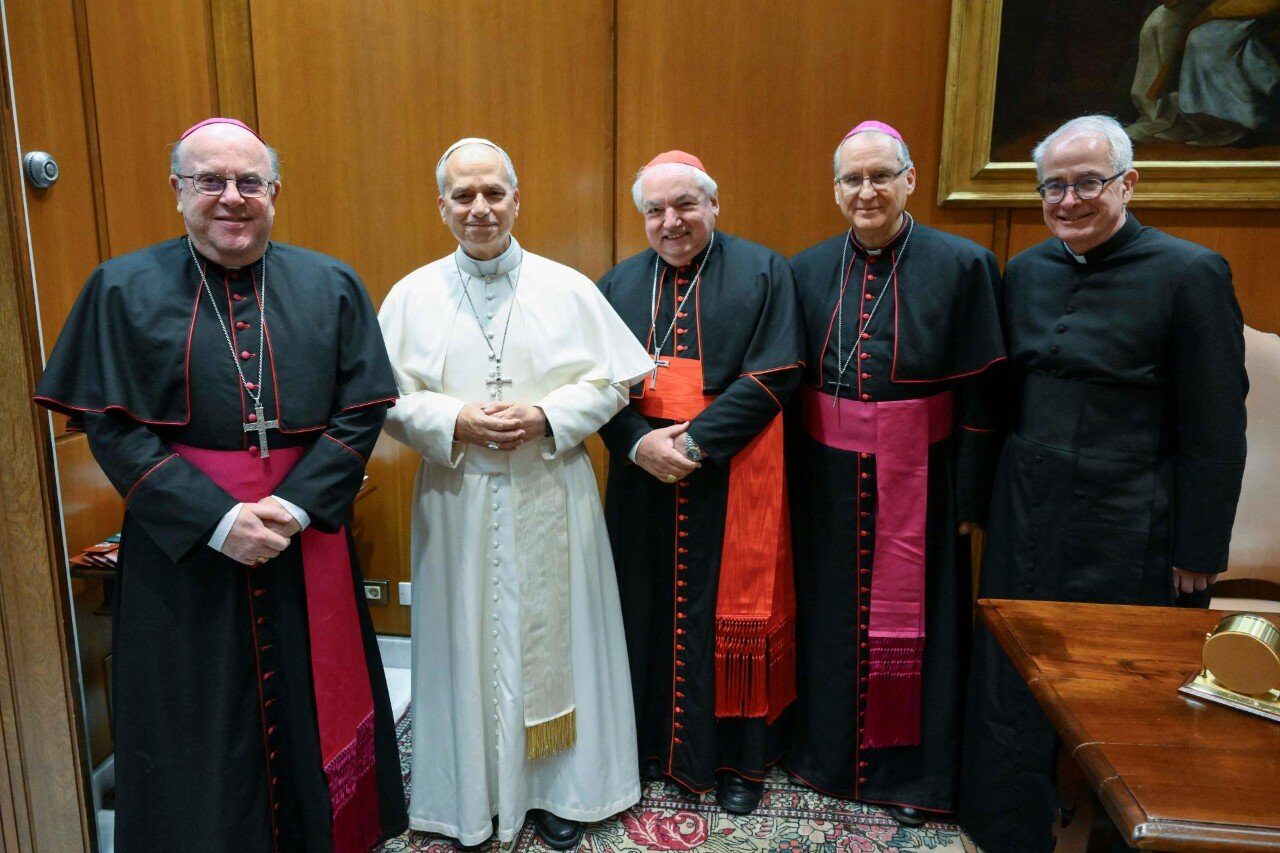 Comme chaque année, à l’issue de l’Assemblée générale de la CEF, le conseil permanent, cette année composée du cardinal Aveline, archevêque de Marseille, Mgr Bertrand, évêque de Pontoise, Mgr Jordy, archevêque de Tours, ainsi que le nouveau secrétaire général le père Christophe Le Sourt, se sont rendus à Rome pour faire part au pape des conclusions de la CEF :