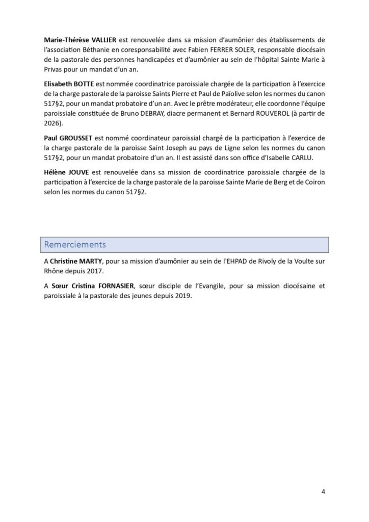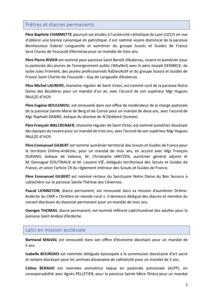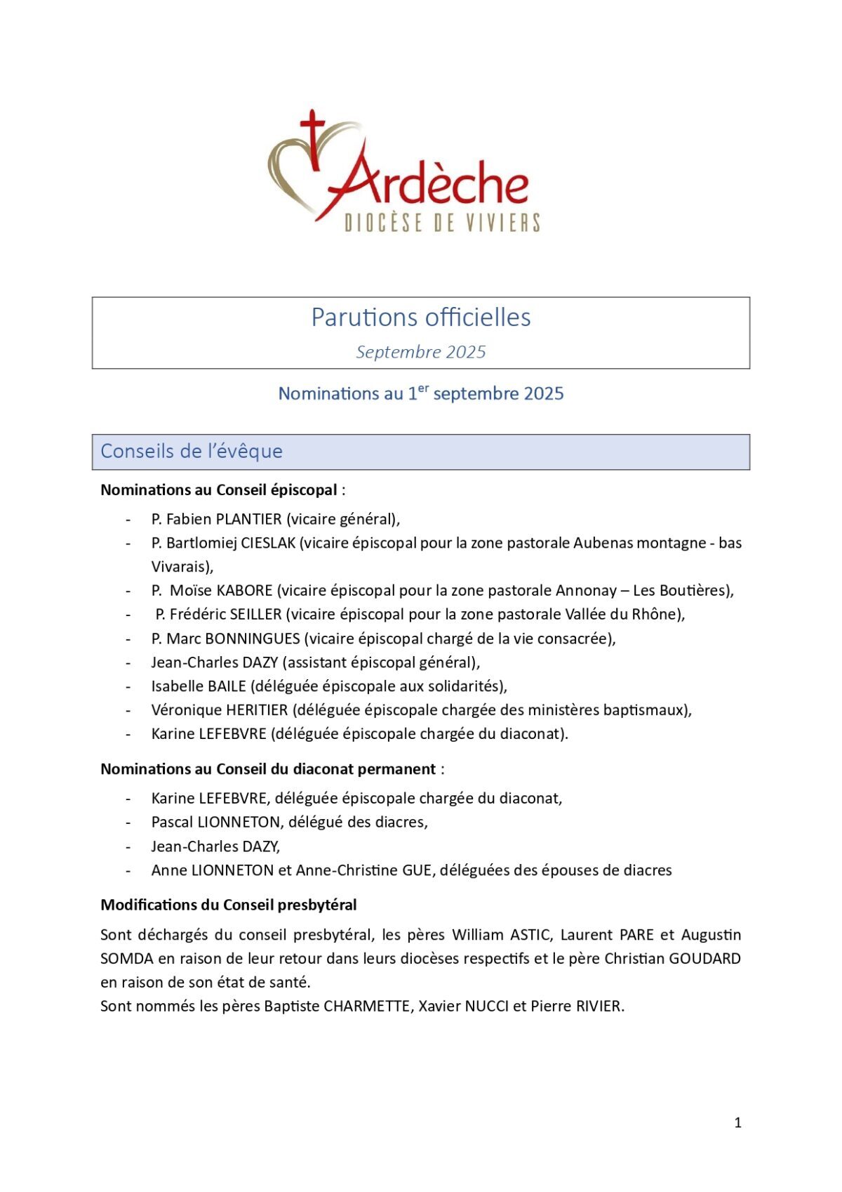 Accueil » Nos archives » Viviers : les nominations diocésaines Église en France Viviers : les nominations diocésaines Voici les nominations dans le diocèse de Viviers (07) depuis septembre : Article précédentConfirmations dans l'ancien rite en Corse Aucun article plus récent 29 décembre 2025