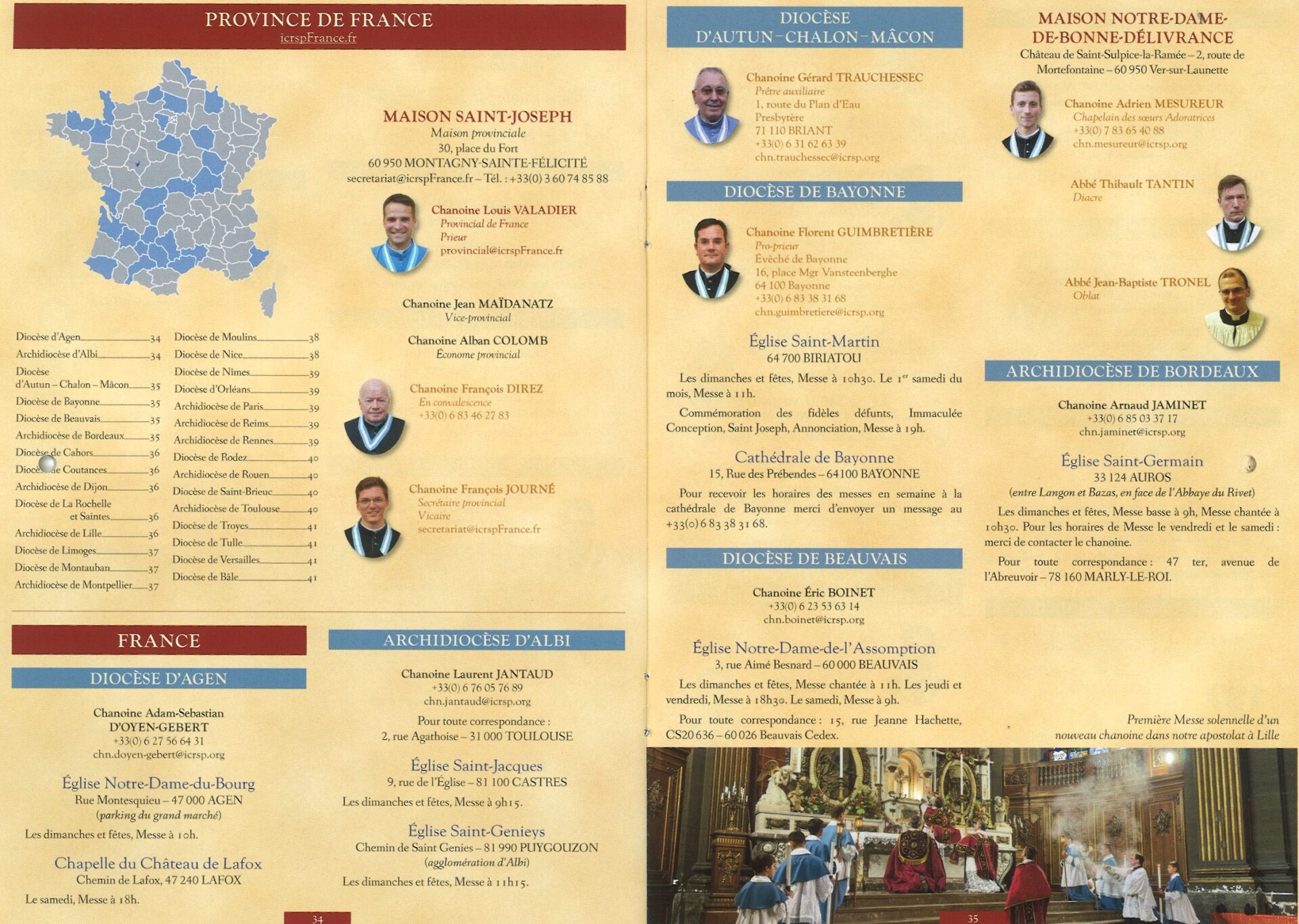 Ce calendrier récapitule aussi les différents apostolats confiés à l’Institut dans le monde.
