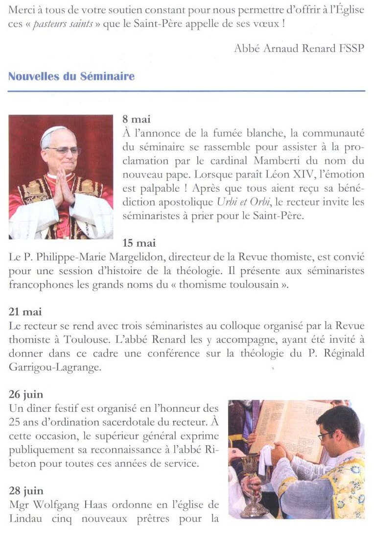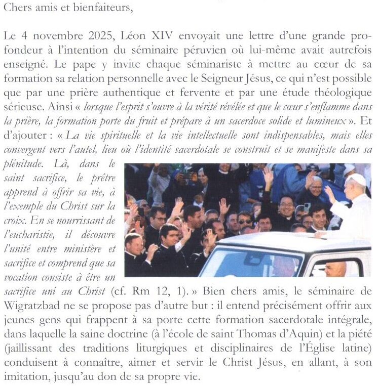Accueil » Nos archives » Dernière lettre aux Amis du Séminaire Saint-Pierre (Novembre 2025) Summorum Pontificum Dernière lettre aux Amis du Séminaire Saint-Pierre (Novembre 2025) La dernière lettre aux Amis du Séminaire Saint-Pierre vient de paraître (Novembre 2025): Séminaire Saint-Pierre Soutenir le Séminaire Saint-Pierre Article précédentViviers : les nominations diocésaines Aucun article plus récent 29 décembre 2025