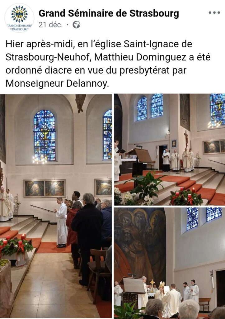 En plus des deux séminaristes ordonnés diacres en vue du sacerdoce en octobre dernier, une troisième ordination diaconale a eu lieu le 20 décembre dernier – la cérémonie a eu lieu dans l’église de Strasbourg Neuhof.